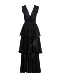 chiffon, ruches, tinta unita, collo con scollatura profonda, senza maniche, sottoveste interna, senza tasche, modello stile impero
