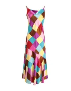 raso, senza applicazioni, fantasia multicolore, collo con scollatura drappeggiata, senza maniche, interno sfoderato, zip, modello sottoveste