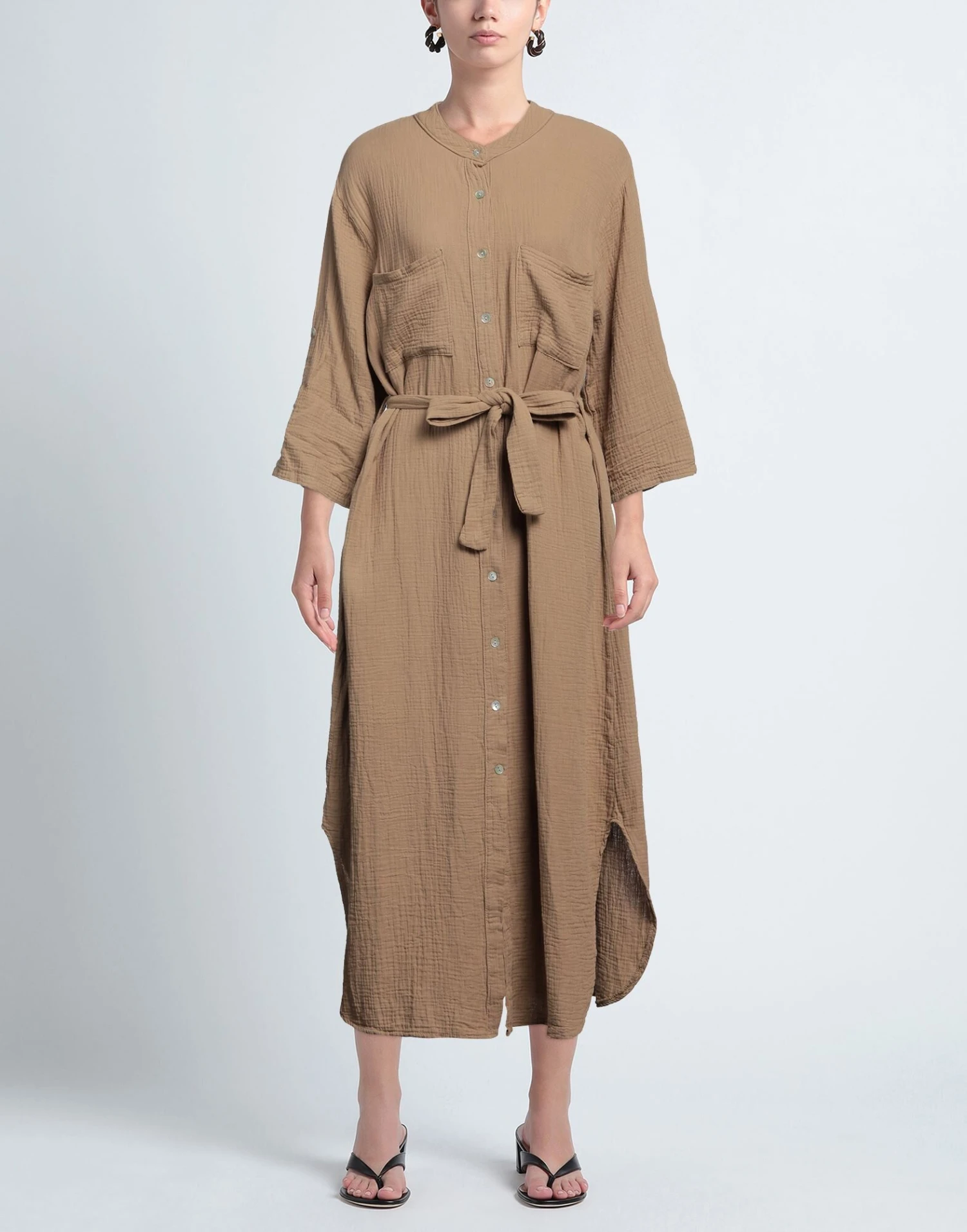 tela, cintura, tinta unita, collo alla coreana, maniche lunghe, interno sfoderato, bottoni, taschino doppio, modello chemisier