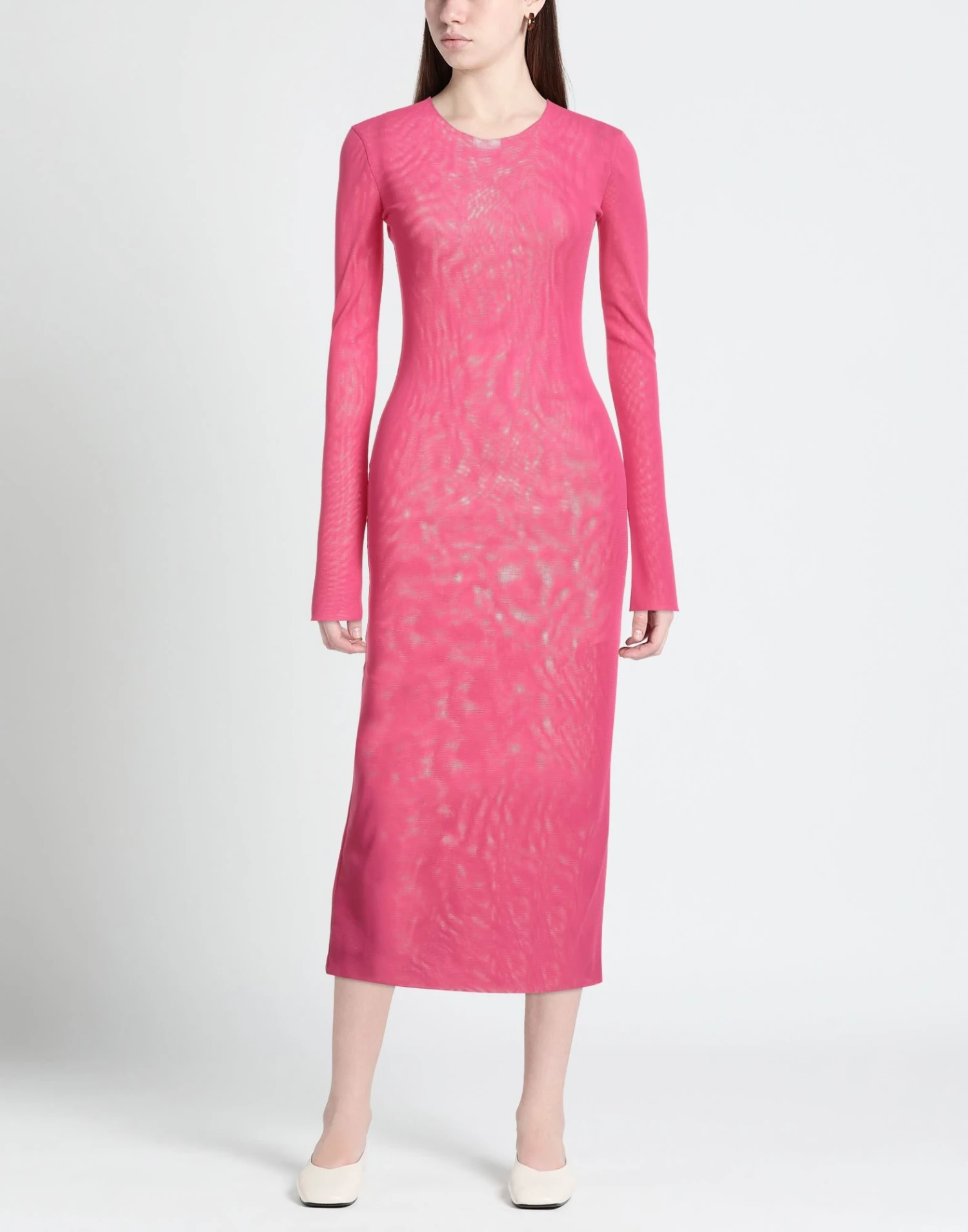 tulle, senza applicazioni, tinta unita, collo tondo, maniche lunghe, interno foderato, senza tasche, modello a tubino