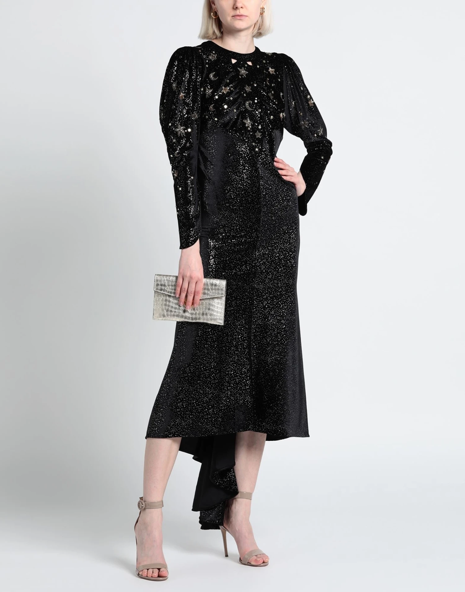 velluto, glitter, strass, tinta unita, collo tondo, maniche lunghe, interno sfoderato, bottoni, senza tasche, modello a tubino