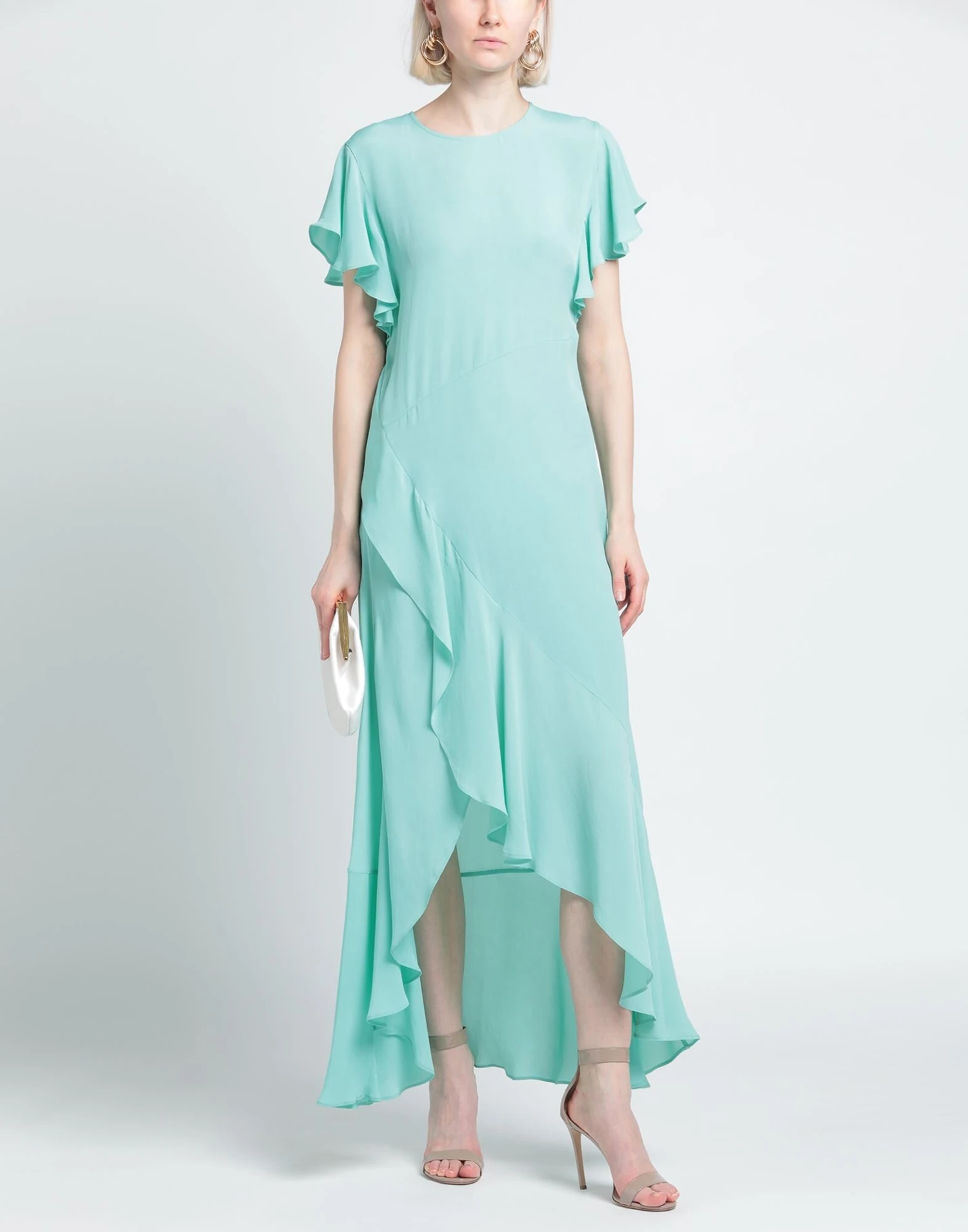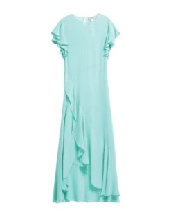 crêpe, brand logo, ruches, tinta unita, collo tondo, maniche corte, interno sfoderato, 1 bottone, senza tasche, spacco anteriore, modello a trapezio