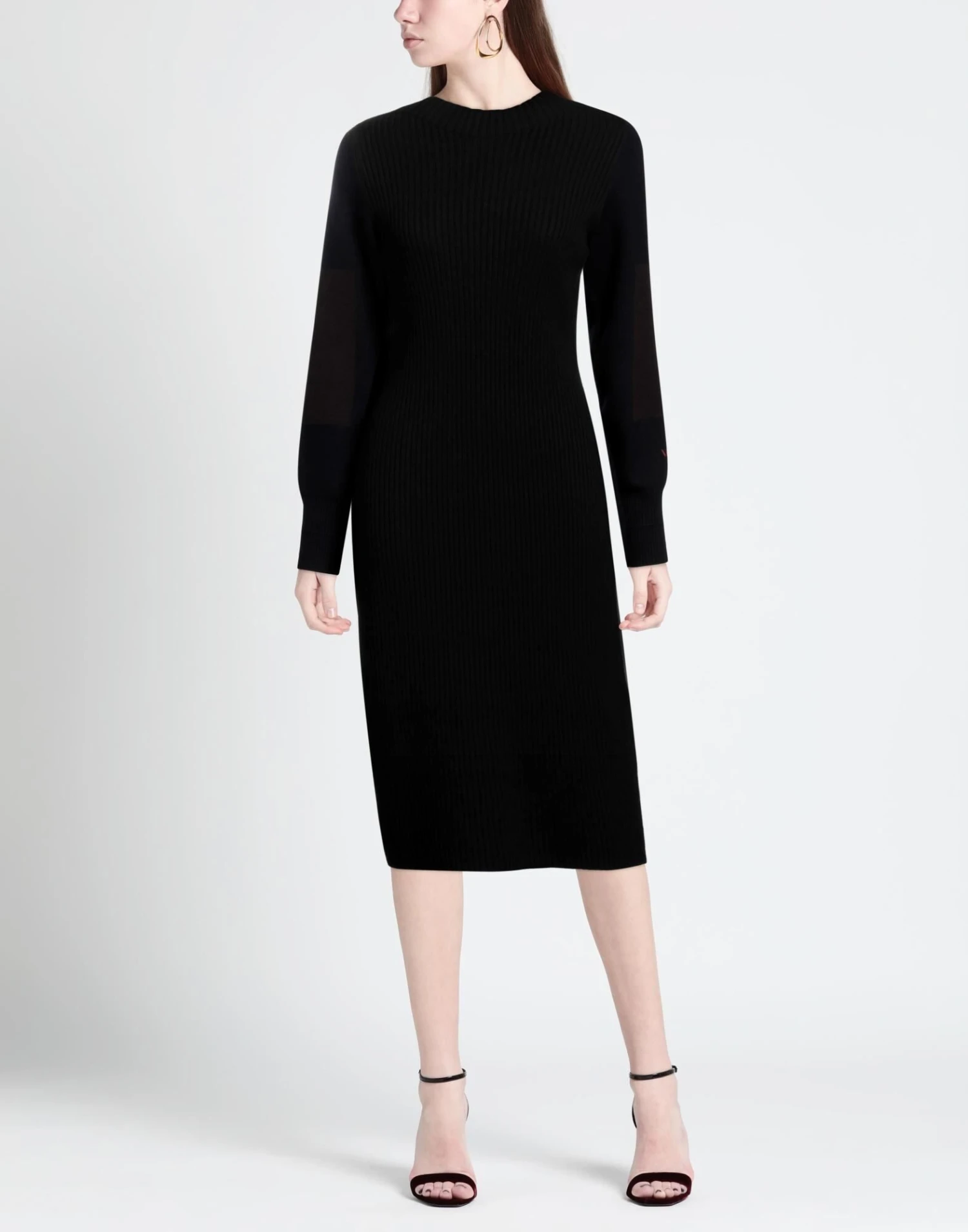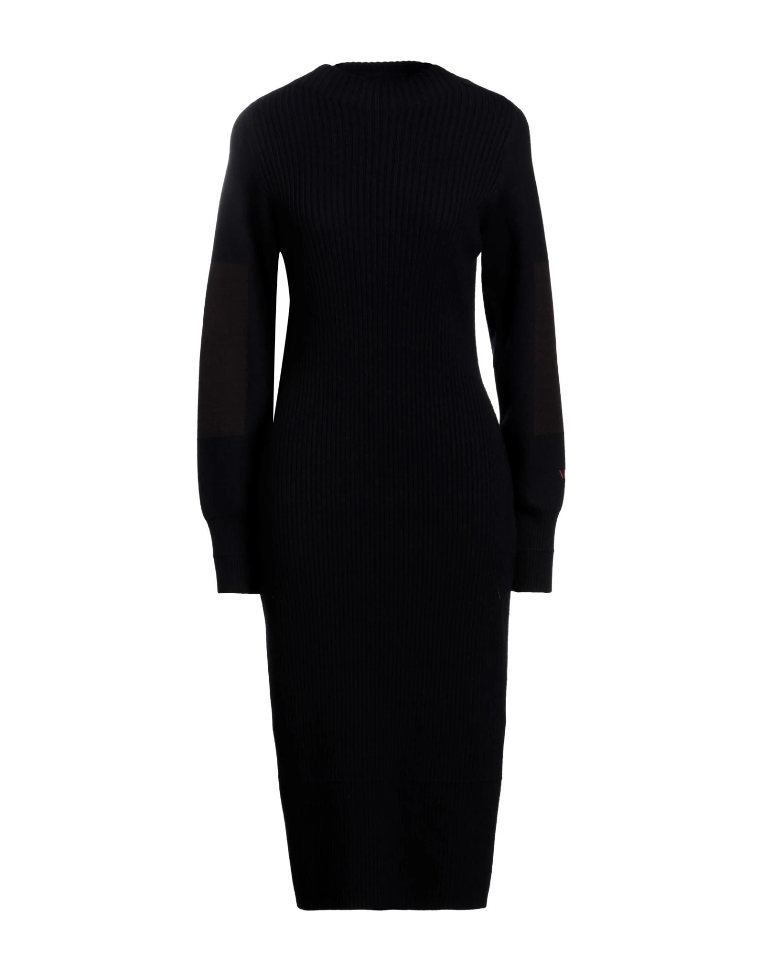 lavorato a maglia, lavorazione a coste, maglia media, brand logo, ricamo, fantasia bicolore, collo tondo, maniche lunghe, interno sfoderato, senza tasche, modello a tubino