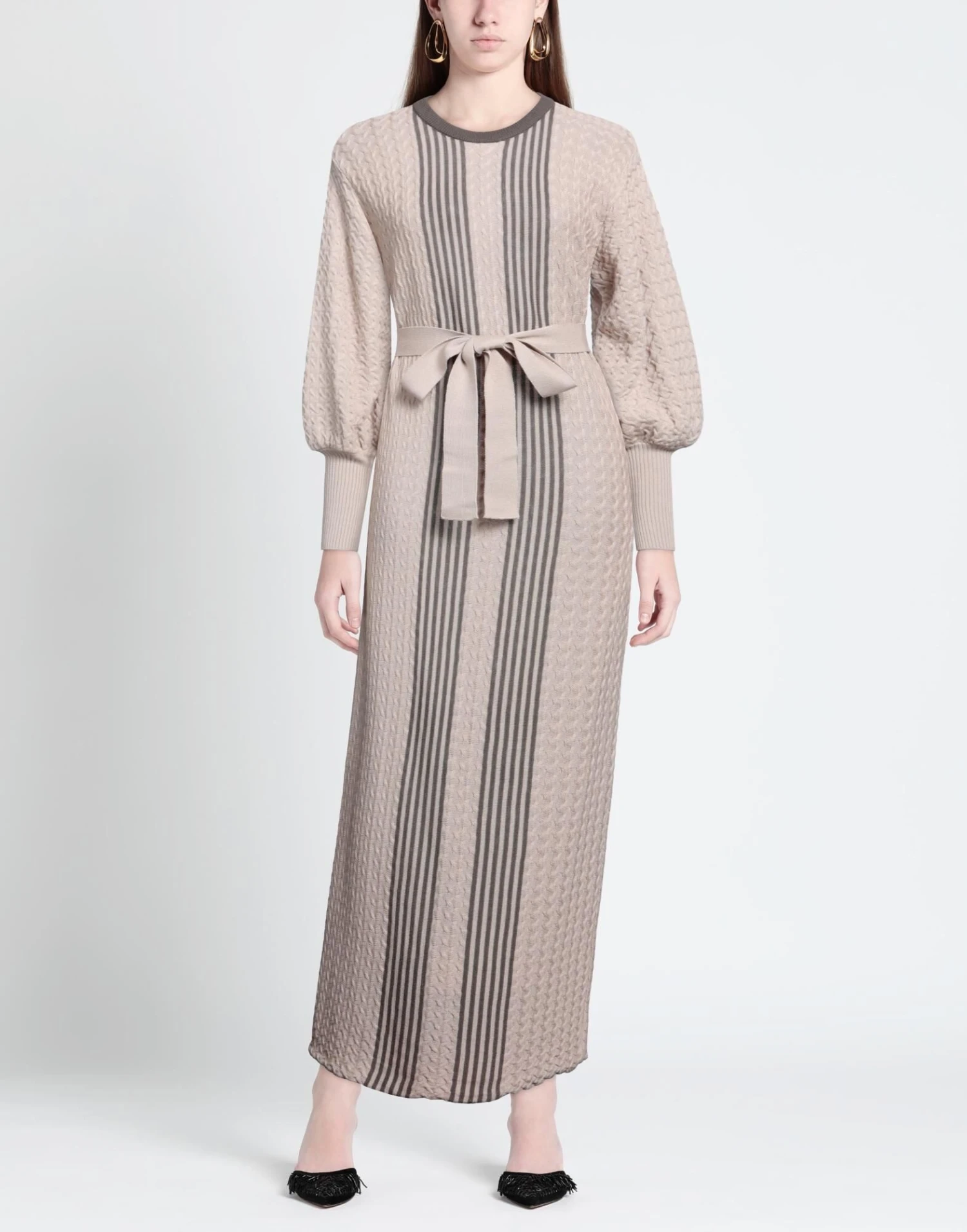 lavorato a maglia, maglia leggera, cintura, a righe, collo tondo, maniche lunghe, interno sfoderato, senza tasche, vestito