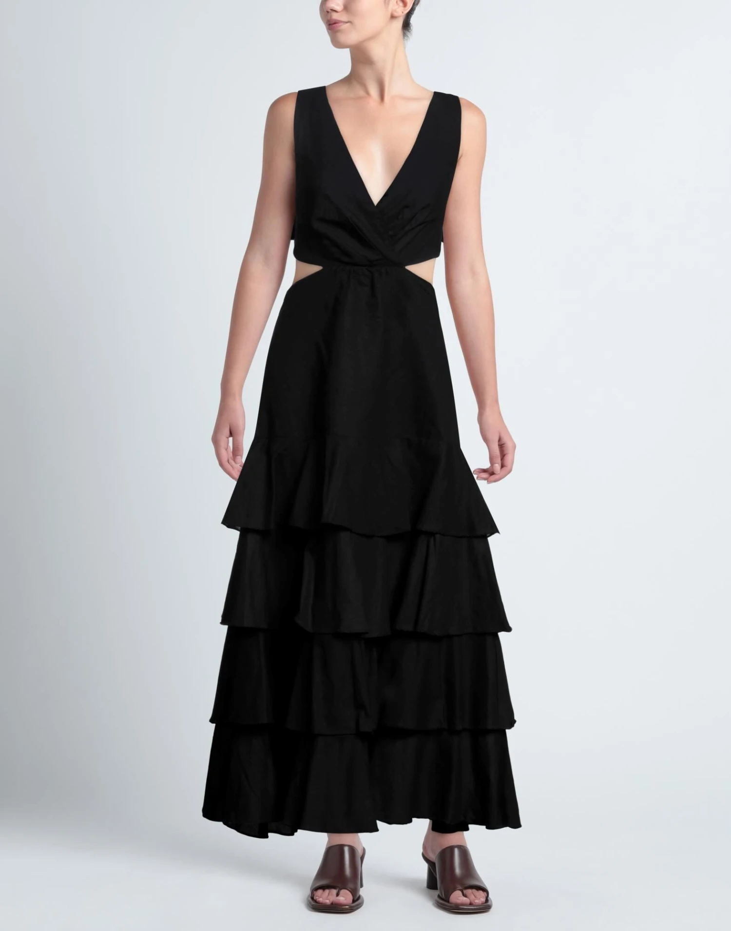 tela, senza applicazioni, tinta unita, collo con scollatura profonda, senza maniche, interno parzialmente foderato, zip, vestibilità ampia, modello a trapezio