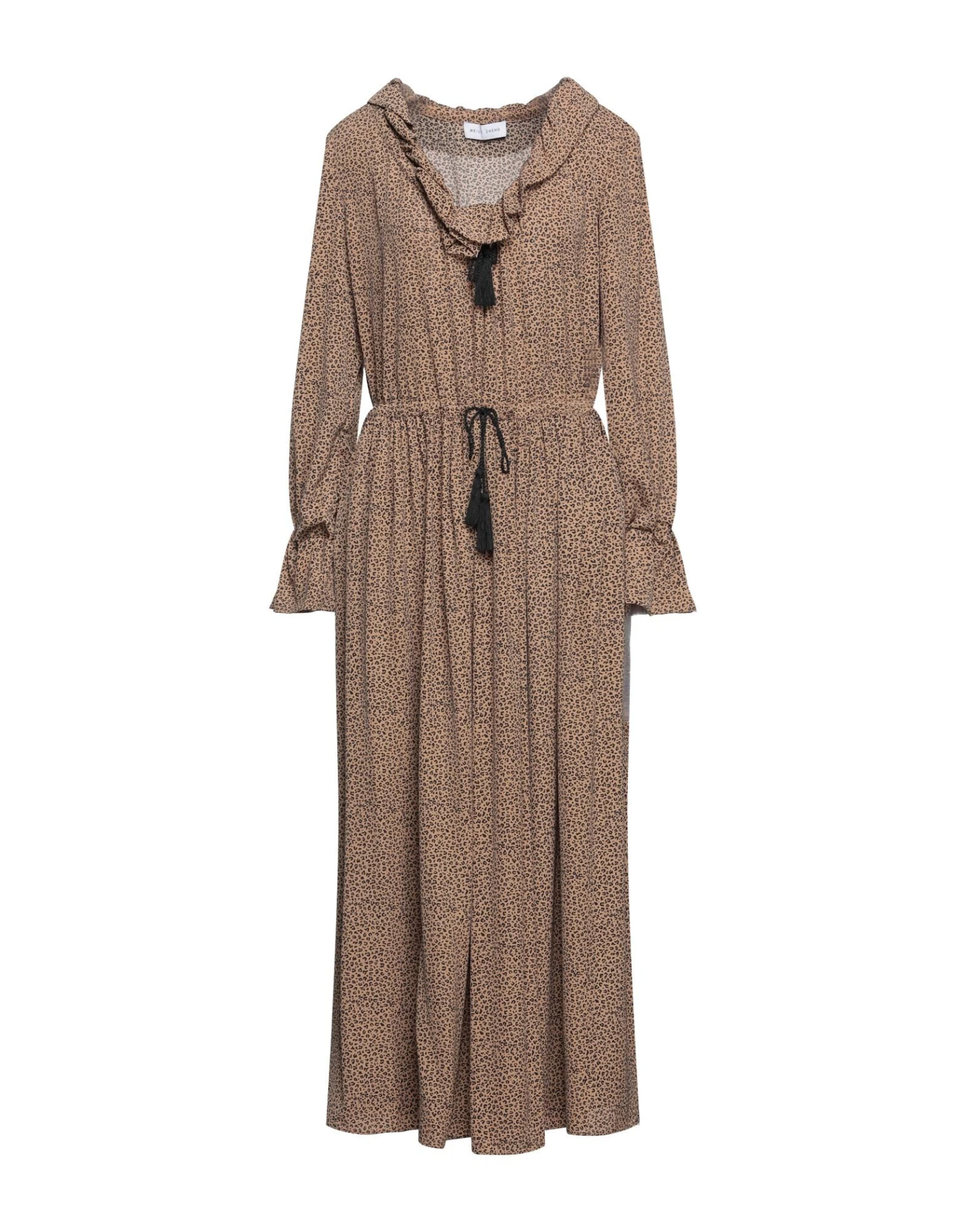 chiffon, ruches, fantasia leopardata, collo con scollatura profonda, maniche lunghe, coulisse, interno sfoderato, vestibilità ampia